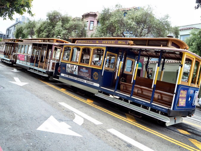 Once the sun came up and the airport began to stir back to life, I freshened up and took a BART train into downtown San Francisco. As luck would have it, I stepped out of the train station and directly into a visitors center. I purchased a one day “passport” that gave me unlimited rides on the cable cars, buses and trolleys, and the helpful checkout attendant provided me a map and the best route to circle around and see the city highlights. I rode the famous San Francisco cable car, standing on the outside, hanging onto the pole, just like you’re supposed to do. It was like a very gentle amusement park ride going up and down the hills of San Francisco.